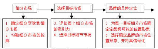 在市场细分的基础上对细分出来子市场进行评估以确定品牌应定位的目标市场。确定目标市场的程序是: 1. 对细分市场进行评估,以确定目标市场;2选择细分市场的进入方式。